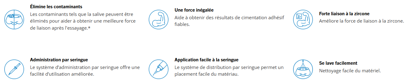 ZirClean est un nettoyant extra-oral pour les surfaces prétraitées des restaurations céramiques, à base de zircone ou métalliques, qui ont été contaminées au cours de l’essayage intra-oral.